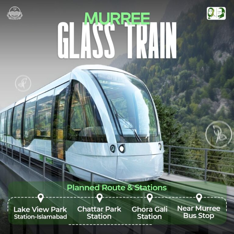According to information shared on her official social media account, the glass train will operate between Islamabad’s Lake View Park and Murree Bus Stop. The route will include four stations: Lake View Park, Chattar Park, Ghoda Gali, and near Murree Bus Stop.