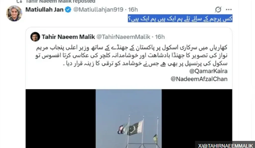 Videos of the flag fluttering next to the national flag in college of Kharian sparked strong reactions online, with users condemning what they saw as political glorification. Some pointed out that the Pakistani flag appeared tattered compared to the newer Maryam Nawaz flag.