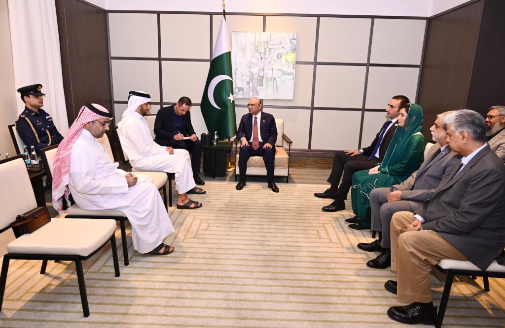 The meeting was also attended by First Lady Bibi Aseefa Bhutto Zardari, Chairman Pakistan Peoples Party Bilawal Bhutto Zardari, and Pakistan’s Ambassador to Qatar.