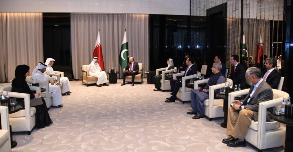 During the discussion, both leaders reviewed ways to strengthen bilateral relations, enhance trade, and explore new avenues for investment between Pakistan and Qatar.